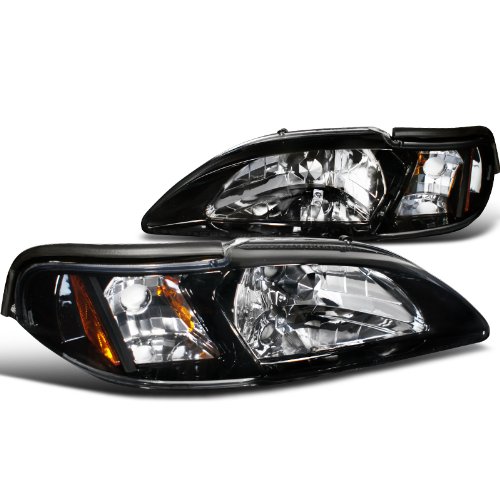 #Brand new in original packaging. Exactly the same as shown in the picture! Come with both headlights. High quality 1pc style glossy black housing smoke lens headlights with corners. These lights are made by an OE approved and ISO certified manufacturer with the quality meet or exceed all OE standards.. Do not come with installation instructions. Direct replacement, no modifications needed. Fitment : 94-98 Ford Mustang all models.