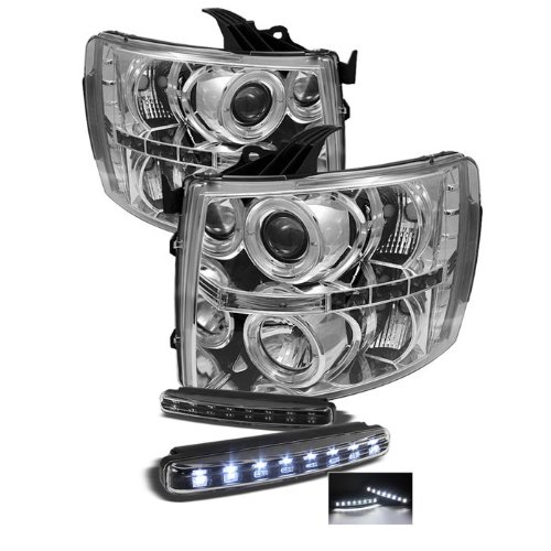 | Chevy Silverado 1500/2500/3500 Halo LED ( Replaceable LEDs ) Chrome Projector Headlights & LED Day Time Running Light Package